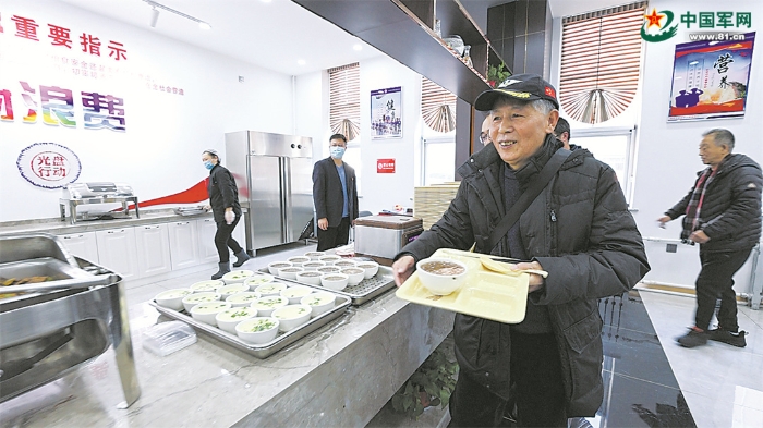 “老兵小食堂”就餐大廳整潔寬敞,膳食搭配營養(yǎng)科學(xué),很受軍休干部歡迎。據(jù)了解,根據(jù)軍休干部的特殊需要,“老兵小食堂”還及時推出了送餐服務(wù)。