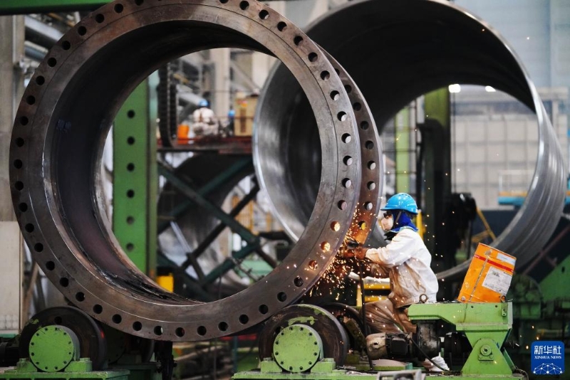 4月14日,在哈電集團(tuán)哈爾濱鍋爐廠有限責(zé)任公司車間,工人在進(jìn)行生產(chǎn)作業(yè)。新華社記者 王建威 攝