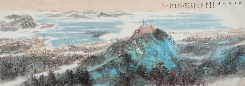 品位作品,前海長(zhǎng)天遼闊,鳳凰山巒坡陀沉實(shí),布局疏密有致,變幻無(wú)窮,高樓挺拔,人文娟秀,壯闊的畫(huà)面和嫻熟的筆法,將晚秋時(shí)節(jié)的寶安繁榮景象勾勒的令人心醉神迷,不禁讓人領(lǐng)略到寶安燦爛的文化歷史、砥礪奮進(jìn)的拼搏精神以及精湛美術(shù)技法的高超。作品整體如行云流水,以清潤(rùn)的筆墨、簡(jiǎn)遠(yuǎn)的意境,把繁榮美好的“灣區(qū)”景象表現(xiàn)得淋漓盡致,雄秀蒼茫,怎一個(gè)好字了得。