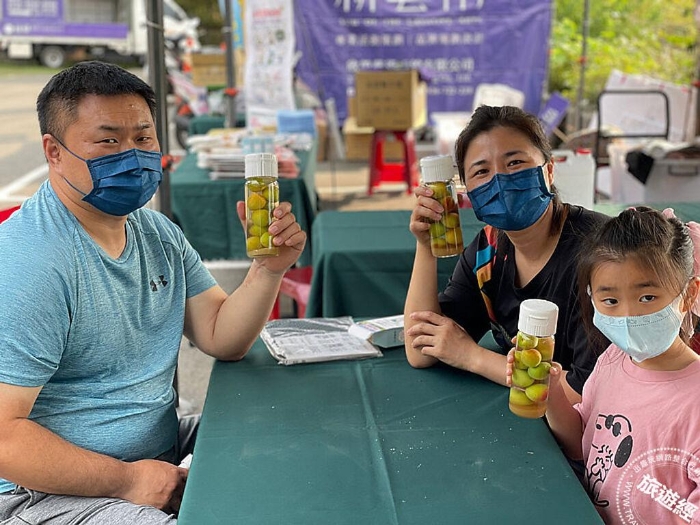 梅嶺-梅子雞等特色料理活動(dòng)地點(diǎn)伍龍步道前廣場(chǎng)并安排有梅子酒及星空沙畫(huà)瓶DIY讓民眾于賞螢前體驗(yàn),而楠西區(qū)在地協(xié)會(huì)、農(nóng)民也擺設(shè)梅子等在地農(nóng)特產(chǎn),吸引現(xiàn)場(chǎng)民眾采買(mǎi)。下午4點(diǎn)開(kāi)始民眾陸續(xù)排隊(duì)報(bào)到并入山賞螢,民眾也可以借機(jī)品嘗梅子特色料理,現(xiàn)場(chǎng)也透過(guò)廣播倡導(dǎo)請(qǐng)民眾配合戴口罩、量體溫及噴酒精等防疫措施。