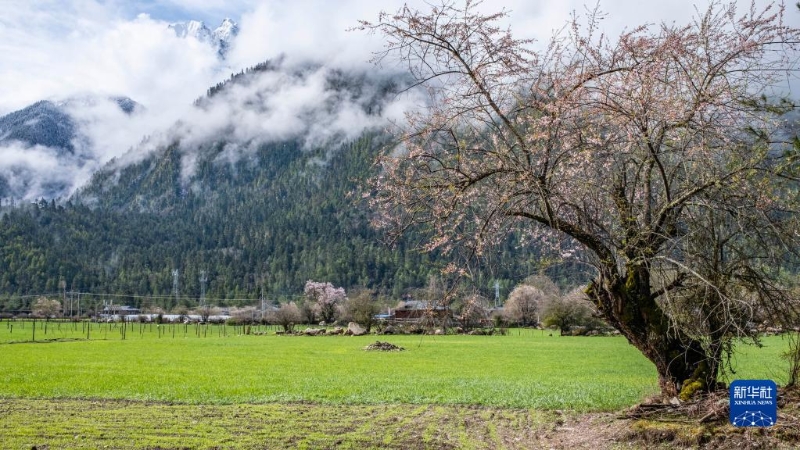 4月的西藏波密春意盎然,近處桃花遠(yuǎn)處雪,美如畫卷。