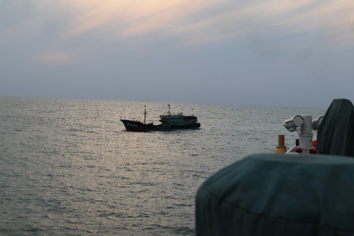 隨后秀山艦將受傷漁民轉(zhuǎn)運(yùn)至艙內(nèi)隔離病房,并安排隨艦醫(yī)生和求助漁船上的兩名漁民對(duì)傷員全程陪護(hù)次日凌晨,秀山艦靠泊浙江舟山某碼頭,將受傷漁民轉(zhuǎn)運(yùn)至醫(yī)院救治。(翟煥才、陶子一、王鵬欽)
