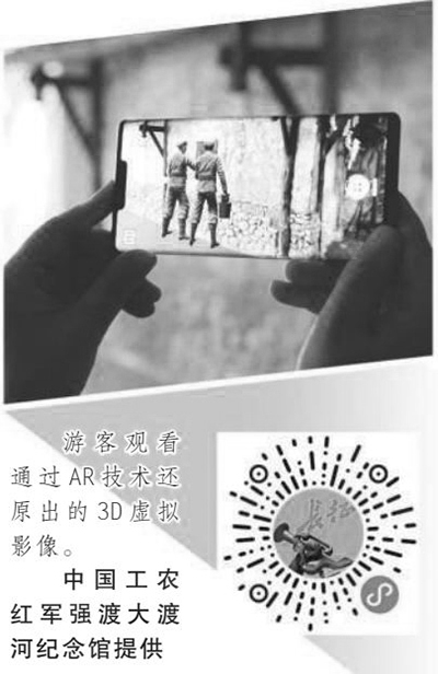 在紀(jì)念館“神炮手趙章成”體驗(yàn)點(diǎn),我打開“強(qiáng)渡天險(xiǎn)”APP,掃描眼前的紅軍強(qiáng)渡大渡河遺址,看到虛擬的紅軍戰(zhàn)士強(qiáng)渡大渡河的三維動(dòng)態(tài)影像,讓我仿佛置身趙章成炮轟碉堡的現(xiàn)場。