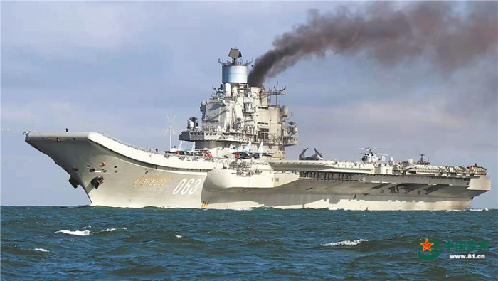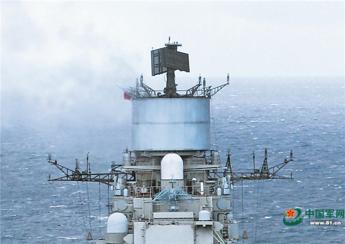 俄羅斯庫茲涅佐夫號航母及其“蛋糕桶”狀空中戰(zhàn)術(shù)導航系統(tǒng)。