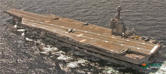 美國杰拉德·R·福特號航母及其改進型菲涅耳透鏡光學助降系統(tǒng)。資料圖片