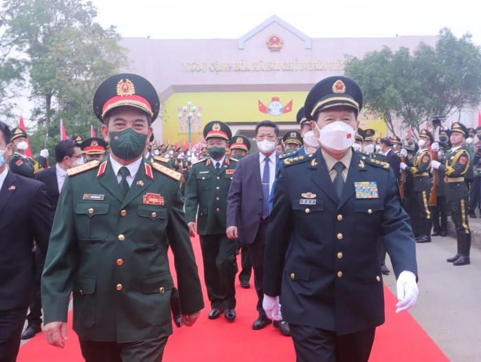 魏鳳和在會(huì)談時(shí)說,習(xí)近平總書記同阮富仲總書記為中越關(guān)系把舵引航,引領(lǐng)雙邊關(guān)系不斷向好發(fā)展。在疫情背景下,雙方連續(xù)兩年舉辦邊境國防友好交流活動(dòng),體現(xiàn)了“同志加兄弟”的深厚友誼,保持了兩國軍隊(duì)友好交往的良好勢頭。兩軍要保持高層戰(zhàn)略溝通,加強(qiáng)海上安全合作,推進(jìn)專業(yè)領(lǐng)域交流,密切多邊協(xié)調(diào)。要完善邊防合作機(jī)制、打擊跨境犯罪、搞好疫情防控,共同維護(hù)好中越邊界的和平安寧。要妥處海上分歧,防范域外國家干擾破壞,推進(jìn)南海合作,共同維護(hù)好南海和平穩(wěn)定局面。