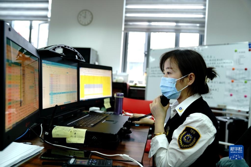 4月23日,上海市閔行區(qū)醫(yī)療急救中心調(diào)度員在接聽電話。