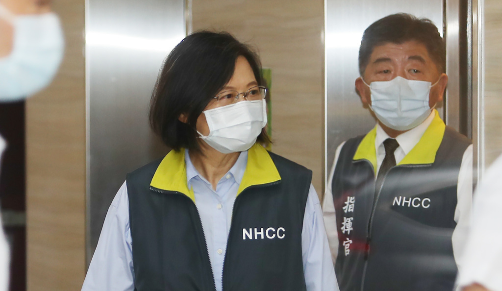 島內(nèi)疫情嚴(yán)重,蔡英文(左)26日特別邀集各部門首長(zhǎng)到“疫情指揮中心”開(kāi)會(huì),商討因應(yīng)的對(duì)策,會(huì)后發(fā)表談話宣布會(huì)加強(qiáng)調(diào)整防疫四大政策,包含“輕重癥分流”、“快篩試劑”、“重點(diǎn)疫調(diào)”與“疫苗施打”等措施,右為疫情指揮官陳時(shí)中。(資料照/季志翔攝)