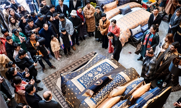 與其他產(chǎn)品不同,人們對高端床品的購買考量不只看重設(shè)計顏值,更要親自觸摸感受它的柔軟度、舒適度。所以,高端床品的潛客大部分是在門店內(nèi)接觸過產(chǎn)品而產(chǎn)生。于是夢潔的第一個高端打法,便是渠道升級,用21家旗艦店連續(xù)開放的大舉措,讓消費者有直觀的“高端”認知:夢潔的高端化不是說說而已,而是從進店的那一刻就感受到了。