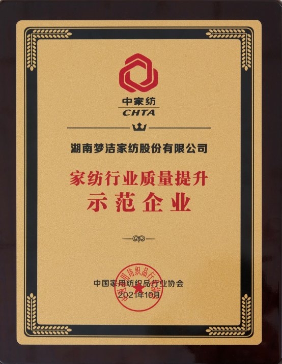 (夢潔獲得家紡行業(yè)質(zhì)量提升示范企業(yè))
