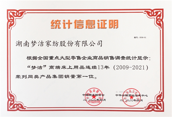 無一例外,憑借人性設(shè)計和出色工藝,這些高端產(chǎn)品均獲得了消費者的高度認可。就在幾天前的2022中國市場商品銷售統(tǒng)計結(jié)果發(fā)布會上,夢潔憑借突出的產(chǎn)品優(yōu)勢及品牌高端化戰(zhàn)略,不負眾望榮獲“高端床上用品更是連續(xù)13年全國銷量領(lǐng)先”的認證,行業(yè)引領(lǐng)地位毋庸置疑。