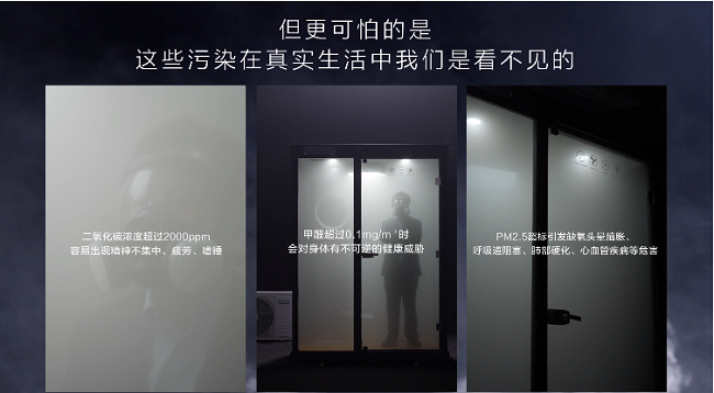 傳統(tǒng)空調(diào)僅支持制冷/制熱等功能,在長(zhǎng)期封閉的使用環(huán)境下,二氧化碳濃度會(huì)隨之升高,從而導(dǎo)致氧氣不足,而經(jīng)常開(kāi)窗通風(fēng)換氣,雖然能保證室內(nèi)空氣清新,但是從霧霾到回南天,也很難獲得一個(gè)健康的空氣環(huán)境。要知道1名成年人每分鐘呼出二氧化碳約0.33L;1㎡復(fù)合木板甲醛釋放量約為0.62ppm,釋放期長(zhǎng)達(dá)5-15年;平均每人每天約產(chǎn)生100萬(wàn)ug的粉塵···在密閉不通風(fēng)的室內(nèi)臟空氣帶來(lái)的種種危害遠(yuǎn)比大家想象中要嚴(yán)重,更可怕的是這些污染在真實(shí)生活中往往是看不見(jiàn)的。