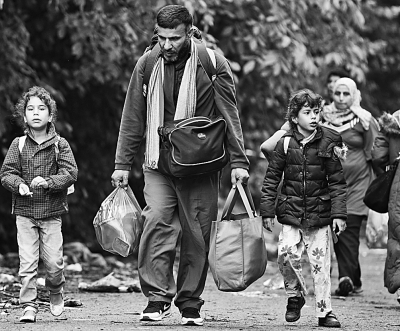 來自敘利亞等國的難民在塞爾維亞邊境小村貝爾卡塞沃徒步前行。 圖源:新華社