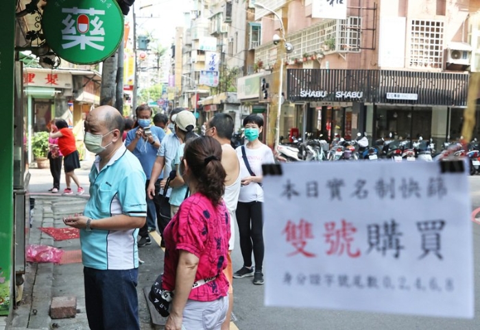 快篩實名制今上路,許多民眾一早就在藥局門口排隊,藥局人員貼心在門口掛告示牌提醒民眾今天是身分證尾數(shù)雙號才能購買。記者潘俊宏/攝影
