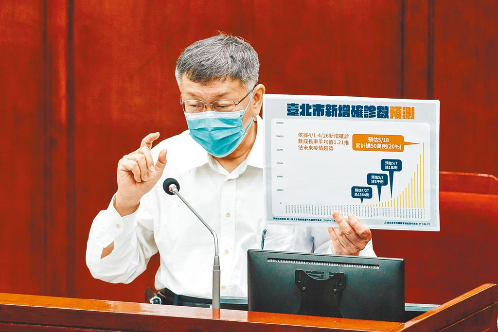臺北市長柯文哲(見圖)27日赴市議會報告追加減預算,面對議員不斷質詢什么是軟性封城,柯解釋,軟性封城的標準就是醫(yī)療量能不能承受時,差不多是單日確診人數(shù),已經(jīng)超過醫(yī)療量能的時候啟動,北北基桃要差不多一致,搞特殊也沒有用。(郭吉銓攝)