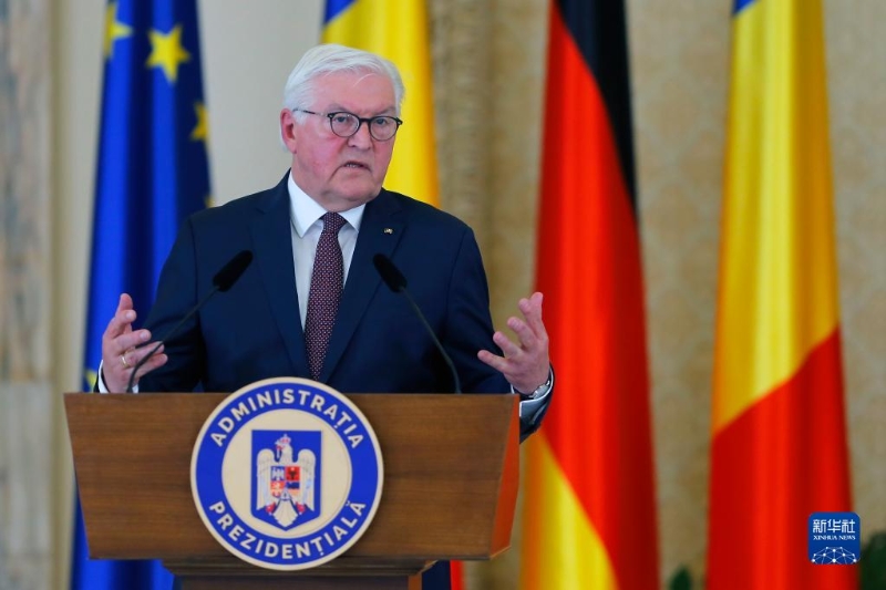 5月4日,在羅馬尼亞首都布加勒斯特,德國總統(tǒng)施泰因邁爾出席新聞發(fā)布會。新華社發(fā)(克里斯泰爾攝)
