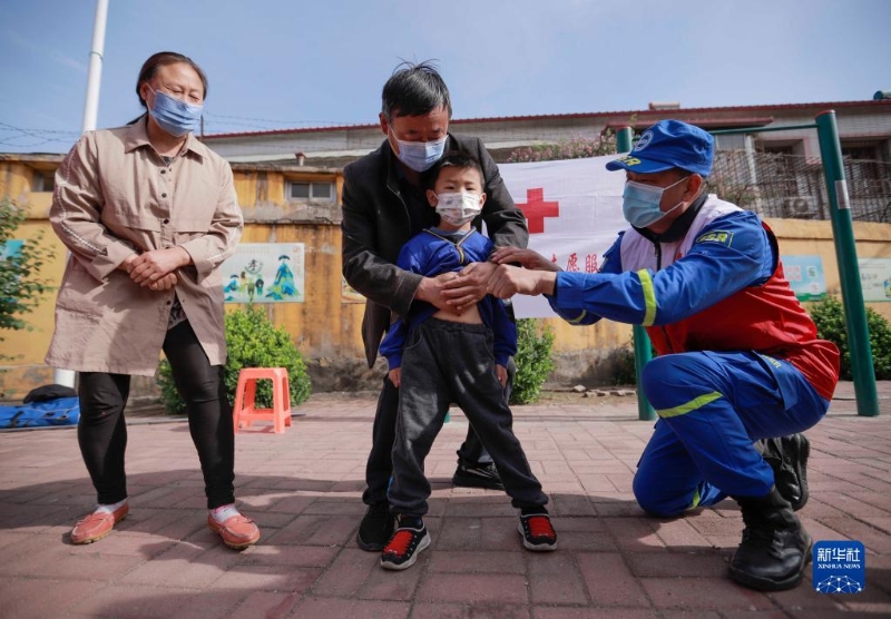 5月7日,在河北省唐山市豐南區(qū)岔河鎮(zhèn),醫(yī)務(wù)人員向村民講解心肺復(fù)蘇急救知識。