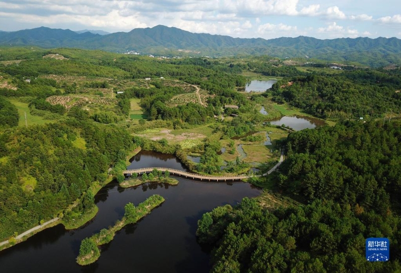 位于福建省龍巖市長(zhǎng)汀縣的長(zhǎng)汀汀江國(guó)家濕地公園(2020年7月28日攝,無(wú)人機(jī)照片)。