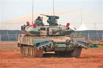 印軍“阿瓊”主戰(zhàn)坦克進行訓練。