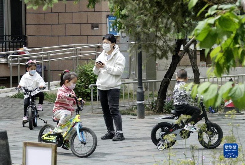 5月9日,孩子們?cè)诔?yáng)區(qū)一個(gè)小區(qū)內(nèi)的公共綠地玩耍。
