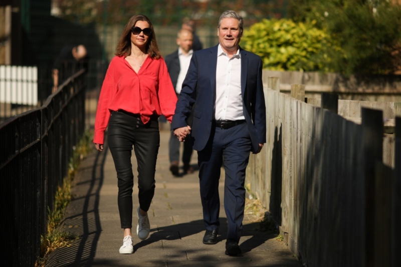 5月5日,英國工黨領袖斯塔默(前右)與妻子前往倫敦一家投票站,準備投票。新華社發(fā)(蒂姆·愛爾蘭攝)