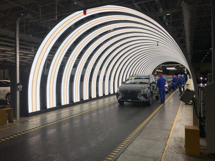在上汽集團(tuán)臨港乘用車工廠,一輛輛整車正在下線。新華社記者 周蕊 攝