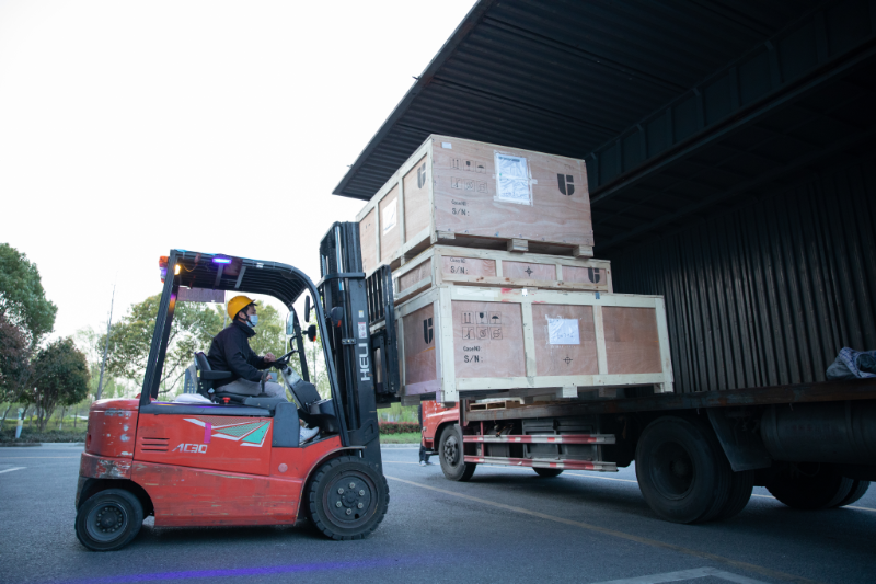 聯(lián)影醫(yī)療裝運(yùn)貨車正準(zhǔn)備將疫情前線急需的CT設(shè)備發(fā)往醫(yī)院。采訪對(duì)象供圖