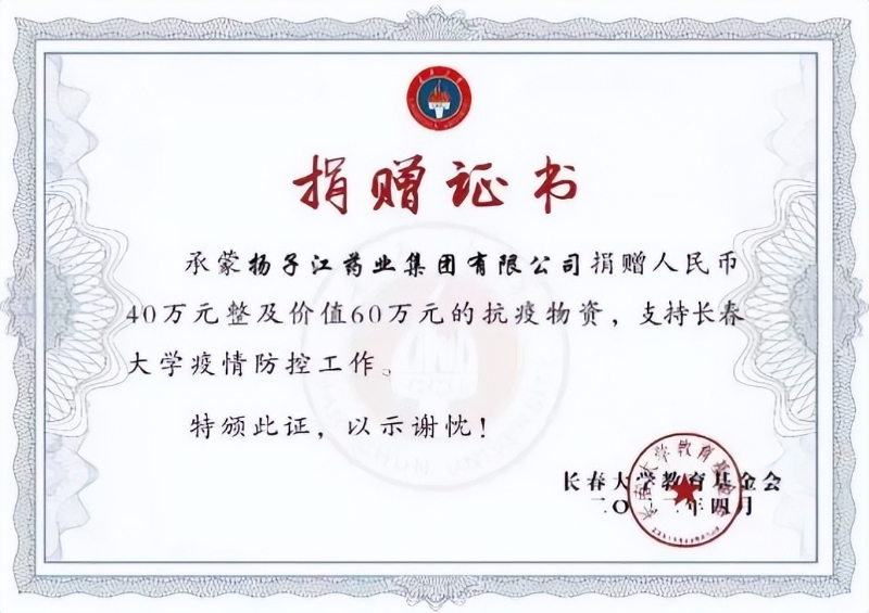 揚(yáng)子江藥業(yè)集團(tuán)作為國內(nèi)醫(yī)藥企業(yè)的主力軍,常年堅(jiān)持以社會(huì)責(zé)任為重,傾心社會(huì)公益事業(yè)。在抗擊新冠肺炎疫情的斗爭中,揚(yáng)子江藥業(yè)集團(tuán)自覺承擔(dān)民營企業(yè)的社會(huì)責(zé)任,為打贏疫情防控阻擊戰(zhàn)發(fā)揮了重要作用,為維護(hù)人民生命安全和身體健康、恢復(fù)經(jīng)濟(jì)社會(huì)發(fā)展作出了重要貢獻(xiàn)。
