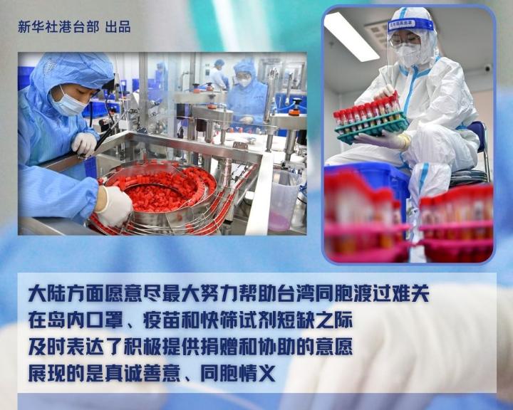 朱鳳蓮在當日例行新聞發(fā)布會上作上述表示。她說,兩岸同胞是血脈相連的一家人。盡快戰(zhàn)勝疫情、恢復正常生活,是兩岸同胞的共同愿望。大陸方面始終關心臺灣同胞生命健康安全,愿盡最大努力幫助臺灣同胞渡過難關,在島內口罩、疫苗和快篩試劑短缺之際,都急臺灣同胞之所急,及時表達了積極提供捐贈和協(xié)助的意愿,展現(xiàn)的是真誠善意、同胞情義。