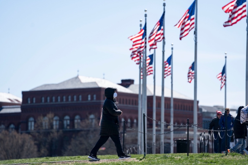 3月29日,行人走在美國首都華盛頓的國家廣場。新華社記者劉杰攝