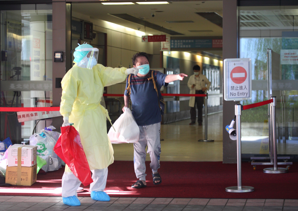 一位民眾在醫(yī)護(hù)的引導(dǎo)下步出新冠專責(zé)病房。(張鎧乙攝)