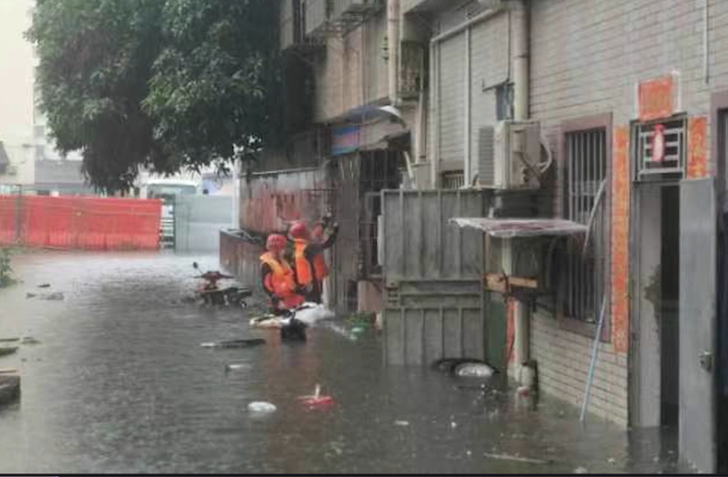 消防救援人員在固戍海濱新村救援受困群眾。(受訪者供圖)