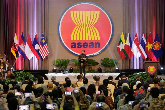 圖為2019年8月8日的資料照片,在印度尼西亞首都雅加達(dá),印尼總統(tǒng)佐科在東盟秘書處新大樓落成典禮上講話。(新華社發(fā),印度尼西亞外交部供圖)