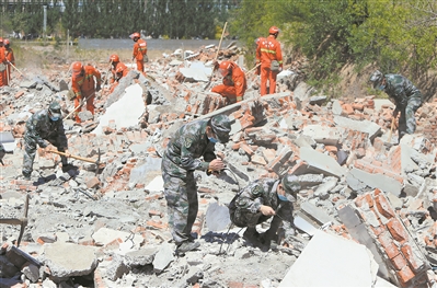 5月9日,在第14個(gè)全國(guó)防災(zāi)減災(zāi)日來(lái)臨之際,遼寧省朝陽(yáng)市軍地聯(lián)合舉行抗震救災(zāi)演練。圖為民兵運(yùn)用生命探測(cè)儀進(jìn)行搜索。李富強(qiáng)攝