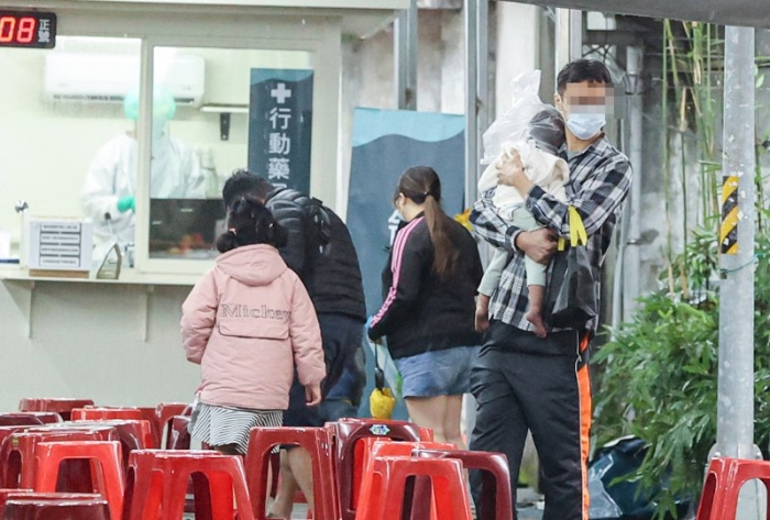 兒童重癥問題引發(fā)急診量能不足擔(dān)憂,圖為等待PCR的家長與孩童。記者曾原信/攝影