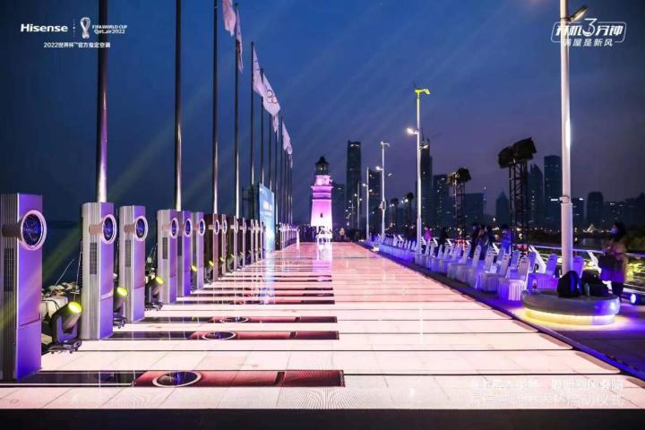 在青島的蜿蜒海岸線上,許多市民被燈光秀吸引,加入到激情歡暢的行列。青島市政府領(lǐng)導(dǎo)和各界嘉賓做客現(xiàn)場,與全網(wǎng)直播觀眾一起開啟足球激情。足壇名宿——金頂老茂宿茂臻與各位足球小將一起進行足球表演,宣告著世界杯激情即將到來,也為青島的濱海增添球場綠茵的色彩。在綠茵環(huán)繞中清新油然而生,海信新風空調(diào)正式開啟世界杯征程,也正式宣布城市更新計劃,為全球億萬家庭喚醒足球賽事激情與健康生命澎湃。