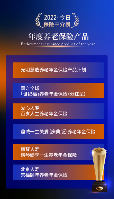5月13日,由保險專業(yè)媒體《今日保》、《今日保險》雜志聯(lián)合主辦的“2022今日·保險中介榜”獲獎榜單揭曉。橫琴人壽旗下產品橫琴臻享一生養(yǎng)老年金保險,經由活動組委會提名,結合專家學者和媒體評審團意見,斬獲“年度養(yǎng)老保險產品”獎項。