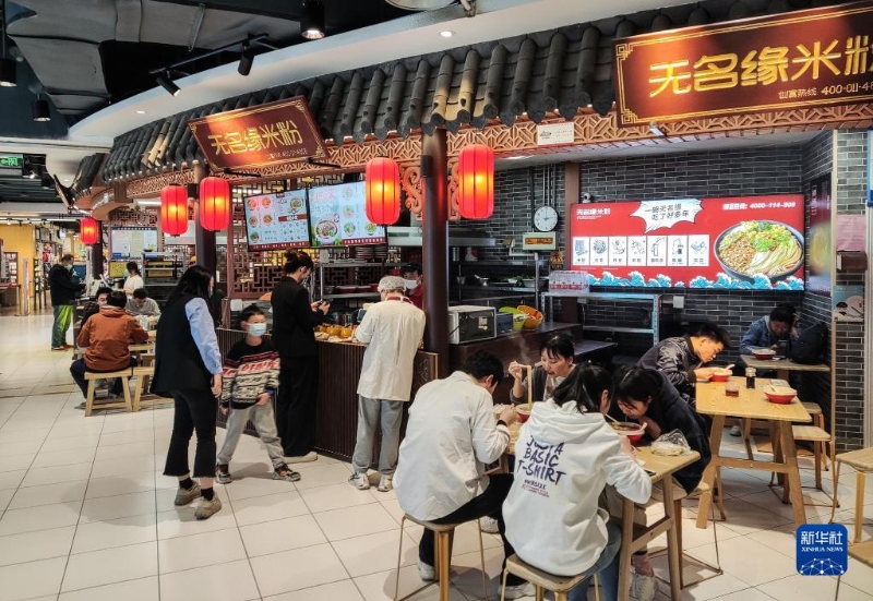 顧客在山東濟(jì)南一家商場的餐飲區(qū)用餐(5月10日攝)。新華社記者 朱崢 攝