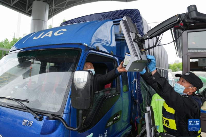 在安徽合肥百大周谷堆大興農(nóng)產(chǎn)品物流園,司機(jī)在智能化門禁系統(tǒng)上掃碼進(jìn)入(4月13日攝)。該園建立集測溫、核驗安康碼、數(shù)據(jù)收集等功能的智能化門禁系統(tǒng),進(jìn)場駕乘人員不用下車即可快速核驗,實現(xiàn)防疫測溫智能化、人車追溯數(shù)據(jù)化。新華社記者杜宇攝