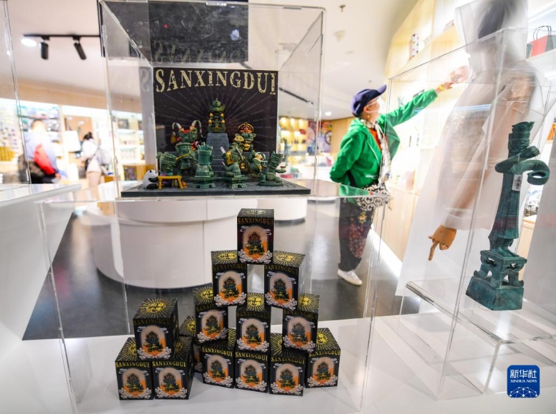 5月16日,游客在三星堆博物館文創(chuàng)商店選購文創(chuàng)產(chǎn)品。