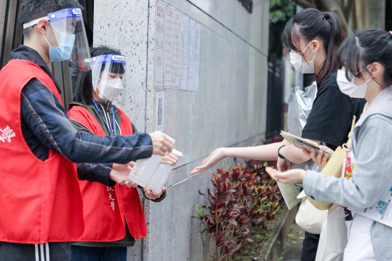 臺灣民眾防疫概念相當(dāng)足夠,日前的四技二專統(tǒng)一入學(xué)測驗(yàn),考場人員全副武裝防疫,考生進(jìn)入考場也須消毒。 圖/記者曾原信攝影