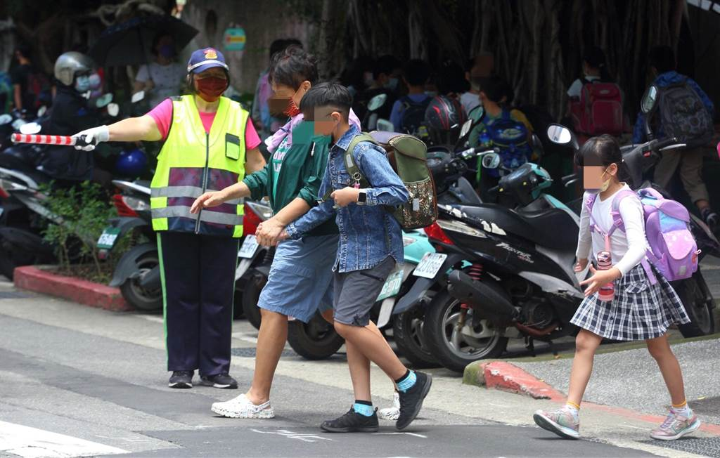圖為臺(tái)北市石牌小學(xué)學(xué)童18日放學(xué)情形。(張鎧乙攝)
