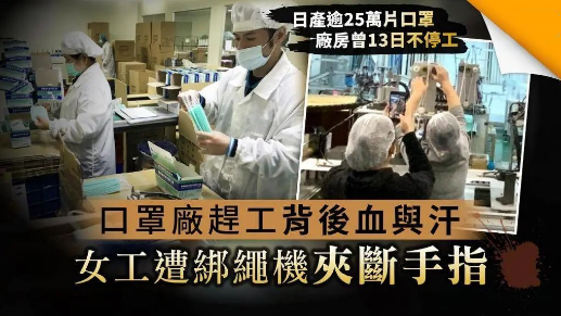 一間口罩工廠被爆為了趕制口罩,導(dǎo)致工人受傷 圖源:臺(tái)媒