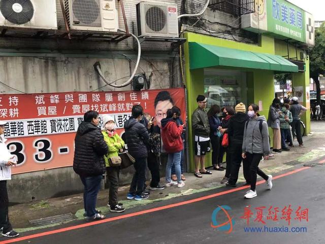 島內(nèi)民眾在藥局門口排隊(duì)買口罩。