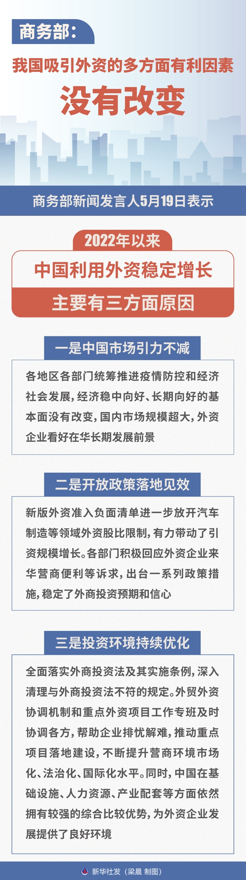 新華社北京5月19日電(記者王雨蕭、謝?,?商務(wù)部新聞發(fā)言人束玨婷19日表示,當(dāng)前,受多重因素影響,我國(guó)利用外資面臨諸多挑戰(zhàn),但吸引外資的多方面有利因素沒(méi)有改變。