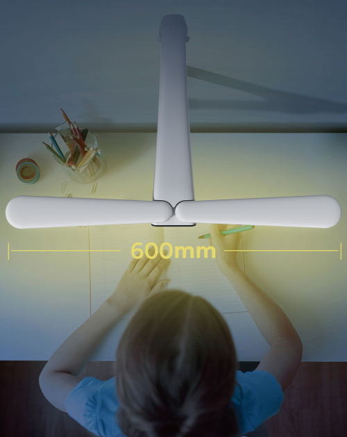 從外觀上看,這款護眼燈最大的亮點就是600mm超長雙燈頭,就像兔子的兩只長耳朵,可在0-180°范圍內(nèi)任意角度開合調(diào)節(jié)。最有“心機”的設計則是燈頭上一圈圍著的防眩光罩,能夠過濾雜光,有效防眩光,緩解視覺疲勞,避免孩子抬頭時光線直射雙眼。在防眩光上,護童還有一項側(cè)發(fā)柔光技術,見光不見燈:將LED燈珠隱附在導光板兩側(cè),使用者不用直接面對燈珠照射,光線不刺眼,減輕視覺疲勞。