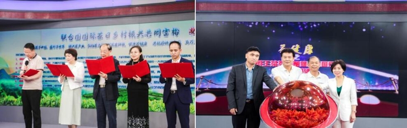 活動(dòng)發(fā)布茶?!霸坡糜巍?“茶基地”地址,舉辦茶健康之國(guó)王茶茶仙釀健康中國(guó)行大型系列活動(dòng)啟動(dòng)儀式、“美美與共”云茶會(huì)、聯(lián)合國(guó)國(guó)際茶日超級(jí)會(huì)客廳,四川雅安葉山村“世界新大地藝術(shù)第五代建筑茶基地”,四川彭州明臺(tái)村“世界新大地藝術(shù)第五代建筑茶仙釀基地”,四川雅安葉山村“茶源文化山水文博康養(yǎng)生態(tài)旅居目的地”,四川彭州明臺(tái)村“春秋十二泉原文化文博康養(yǎng)生態(tài)旅居目的地”,四川雅安葉山村“五萬(wàn)五興鄉(xiāng)村振興雷鋒精神共同富裕踐行基地”,四川彭州明臺(tái)村“五萬(wàn)五興鄉(xiāng)村振興雷鋒精神共同富裕踐行基地”進(jìn)行揭牌。
