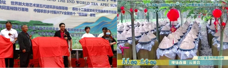 四川雅安葉山村由四川省扶貧基金會(huì)產(chǎn)業(yè)部部長(zhǎng)鄭景濤,四川省扶貧基金會(huì)雅安分會(huì)會(huì)長(zhǎng)王超英揭牌;彭州明臺(tái)村分別由大會(huì)主席車夫,四川師大謝元魯教授,致和街道辦主任祁中華,明臺(tái)村總支部書記謝賢斌,明臺(tái)村總支部副書記柳萬(wàn)麗,明臺(tái)村老齡支部書記莊井志,明臺(tái)村企業(yè)支部書記邵遠(yuǎn)久揭牌。四川茶?!霸坡糜巍保辈ョR頭定焦四川雅安葉山村和四川彭州明臺(tái)村;四川雅安葉山村和四川彭州明臺(tái)村成為聯(lián)合國(guó)國(guó)際茶日暨世界茶派克(APEC)峰會(huì)永久會(huì)址。