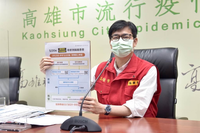 高雄市23日確診個案(7366)比臺北市(7185)還多,陳其邁認(rèn)為北部地區(qū)“有黑數(shù)”。(高雄市府提供/袁庭堯高雄傳真)