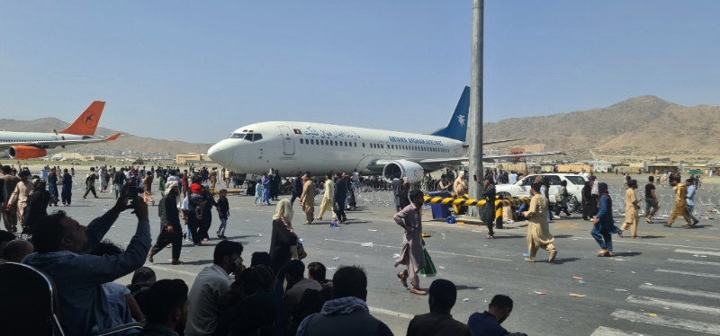 這是2021年8月16日,大量民眾聚集在阿富汗喀布爾機場試圖離開阿富汗。新華社發(fā)